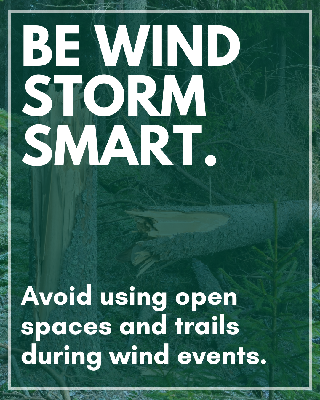 With the ongoing wind advisory in affect for our region, residents are encouraged to avoid using open spaces and trails. Residents who choose to be in these environments should take extra precautions when wind surges, such as: